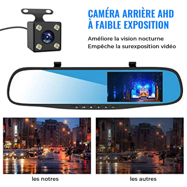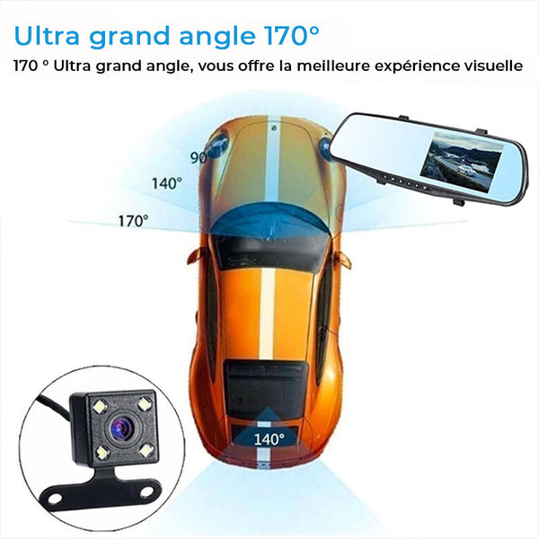 • Zéro zone aveugle : Le rétroviseur sans angle de vue arrière sans angle mort vous aide à voir toute l'image derrière vous. Il ne bloquerait pas votre vue même les jours de pluie, en particulier lorsque vous reculez, ce que d'autres rétroviseurs ne peuvent pas réaliser. Plus de soucis pour les obstacles sur le siège arrière. La caméra de tableau de bord miroir X1 vous permet de conduire en toute sécurité !