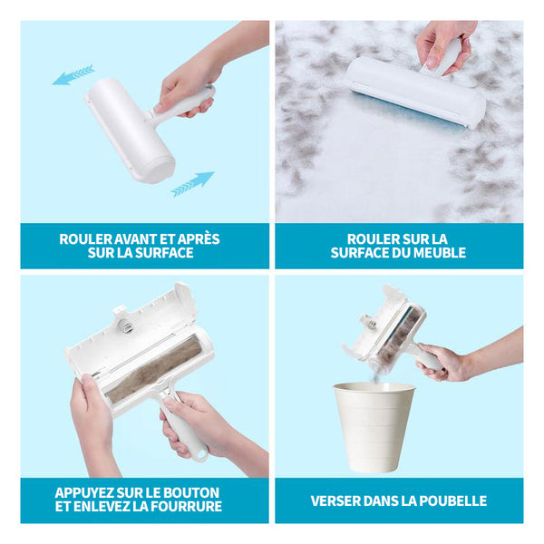 • AUCUNE BATTERIE OU SOURCE D'ALIMENTATION REQUISE: il vous suffit d'utiliser de brefs coups de va-et-vient avec le rouleau pour capturer tous les poils d'animaux et les peluches dans le réceptacle à poussière.