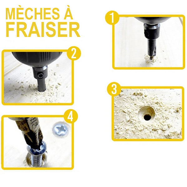Les forets à fraiser effectuent les trois opérations avec un seul foret, vous offrant la même précision et la même puissance dans un ensemble simple, rapide et facile à utiliser.