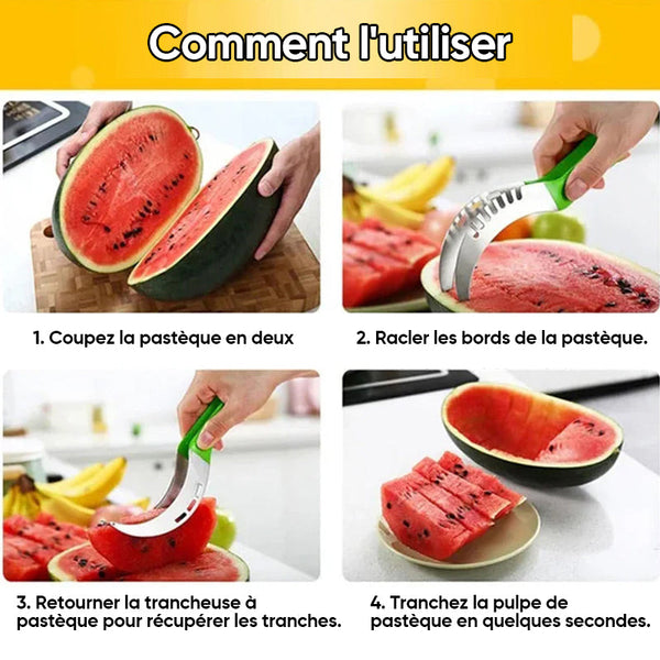 • Poignée ergonomique : Ce coupe-pastèque et coupe-ananas est doté d'une poignée ergonomique et pratique de conception robuste. Ce coupe-pastèque est facile à manier et permet d'obtenir des résultats rapides et professionnels sans frustration ni perte de temps.